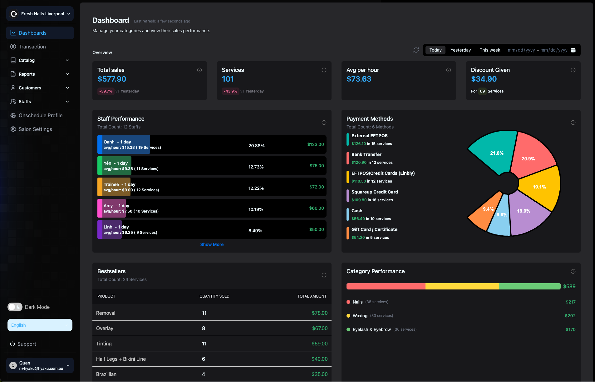 From walk-ins to bookings, manage sales, checkout clients, and accept payments — whether it's nails, massage, or beauty treatments.